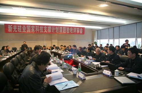 2009年3月12日,由中国电子材料行业协会组织召开的“新光硅业国家科技支撑计划课题验收评审会”在我公司顺利举行。评审专家组由:电子材料行业协会半导体材料分会秘书长朱黎辉、中国可再生能源学会教授级高工赵玉文、清华大学教授陈皓明等共计10位专家组成。国家科技部高新技术发展及产业化司材料处调研员李宝山、国家科技部高新技术发展及产业化司材料处吴椿辉、电子材料行业协会主任鲁瑾、电子材料行业协会李清岩、四川省科技厅巡视员谭开林、四川省科技厅高新处调研员程毅敏、乐山市副市长周勇、乐山市科技局局长郭捷,以及我公司领导班子成员出席了会议。会议由电子材料行业协会秘书长袁桐主持。