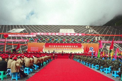 在庆典仪式上,康定县县委书记相洛、石棉县县委书记王加良、甘孜州州政府副秘书长易武、雅安市市委常委、秘书长杨凯、成都电监办专员张健先后讲话。各位领导向田湾河流域梯级水电站全部建成表示热烈的祝贺,向为工程建设做出贡献的全体建设者表示亲切的慰问。