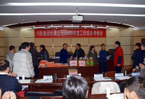 1月18日,根据川投集团的统一安排,集团公司第三考核组在公司二会议室召开川投集团所属公司2009年度工作综合考核会,对公司2009年度工作进行综合考核。考评组组长、川投集团副总经理伍康定、考评组成员石平、王海帆、陶世贤、汪筱岚参加了考核,公司领导及公司全体员工参加了考核会。考核由伍康定主持。