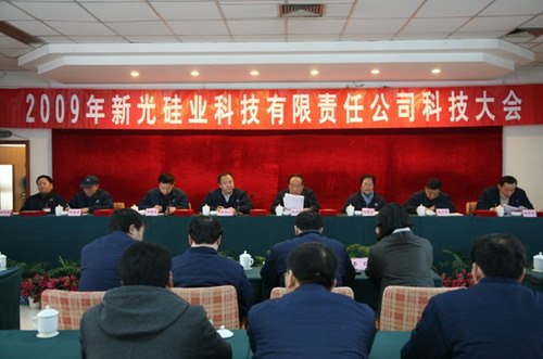2010年1月5日,公司2009年度科技大会在金海棠酒店一号会议室隆重召开,会议对2009年度科技工作进行了总结,对2009年度为公司进步做出突出成绩和贡献的科技工作人员进行了表彰,同时对2010年科技工作进行了部署安排。公司领导班子、各部门经理、工段长、课题组主要研究人员、公司全体技术人员、相关部门人员等80余人参加了大会。