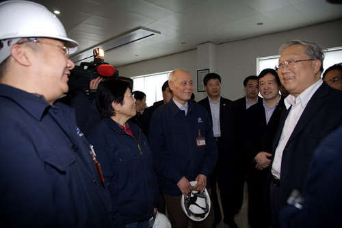 2010年4月16日下午,全国人大常委会副委员长路甬祥率全国人大《科学技术进步法》执法检查组,深入新光硅业公司1000吨/年多晶硅项目现场调研。