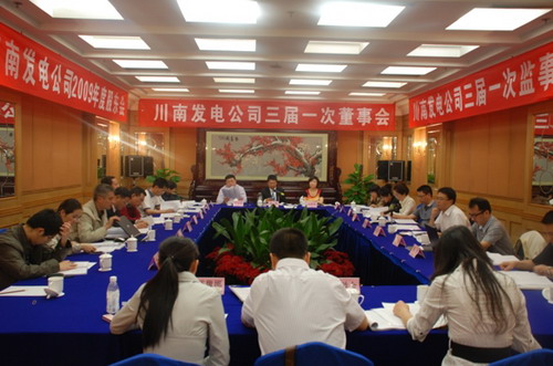 2010年5月13日,川南发电公司2010年度“三会”(股东会、董事会、监事会)在成都胜利召开。会议由川投集团总经理、川南发电董事长郭勇主持。参加会议的有:华电国际副总经理、川南发电副董事长王文琦,董事杨平、郭爱国、肖群英、李胜章、唐得旗,监事会主席任明霞,监事郑世红、宋咏梅。