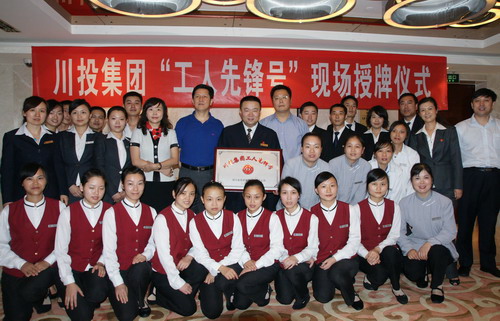 2010年8月26日下午3点,川投国际网球中心房务部主楼6楼热闹非凡,不时响起阵阵掌声。在这里,正在进行 “川投集团工人先锋号”现场授牌仪式,川投集团党委副书记董建良、工会主席吴天凤、总经济师李文志、党群部副主任王军参加了此次授牌仪式,集团党委副书记董建良亲自为获得“川投集团工人先锋号”的川网公司房务部进行了授牌并给予鼓励。