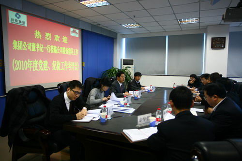 12月7日,由川投集团公司党委副书记董建良为组长的川投集团考评组一行4人来到川投峨铁公司,对公司党建、党风廉政建设、“四好”领导班子建设、维护稳定和社会治安综合治理工作、创先争优工作进行了综合考评。峨铁公司领导班子全体成员以及部分中层干部、一线职工、党外人士和离退休老同志、劳模标兵代表等共50人参加了在九楼会议室召开的考评会。