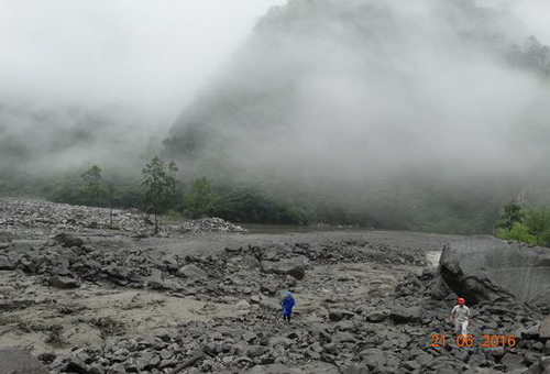 9:00公司紧急召开了龚家沟暴雨山洪泥石抗洪抢险工作会。听取了灾情汇报,并对抢险工作进行了部署。张昊指示公司副总经理唐剑虹立即赶赴现场组织现场灾情核查、制定抢险方案、组织损毁道路抢通;公司总经理助理熊宇负责组织、处理损毁引水系统的核查和调度工作,确保引水隧洞安全,生产系统不受影响。