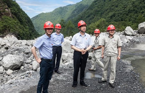 金总先后到龚家沟泥石流损毁道路、大发首部实地查看灾害损失和恢复重建情况。张昊向金总汇报了“6.21”龚家沟暴雨山洪泥石流自然灾害损失、应急处置和近期公司生产经营情况。