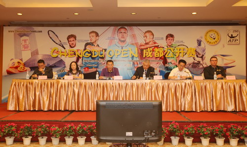 8月29日,期待已久的成都公开赛(ATP250世界巡回赛)新闻发布会在四川国际网球中心川投国际酒店举行。国家体育总局网球运动管理中心副主任郎维、成都市体育局副局长高伟、成都市双流区体育局局长文虹霞、成都文旅集团总经理高润强、四川国际网球中心执行董事兼总经理王旭涛、赛事总监费历克等领导和嘉宾出席了本次新闻发布会。本次新闻发布会还吸引了50余名媒体记者到现场采访报道。