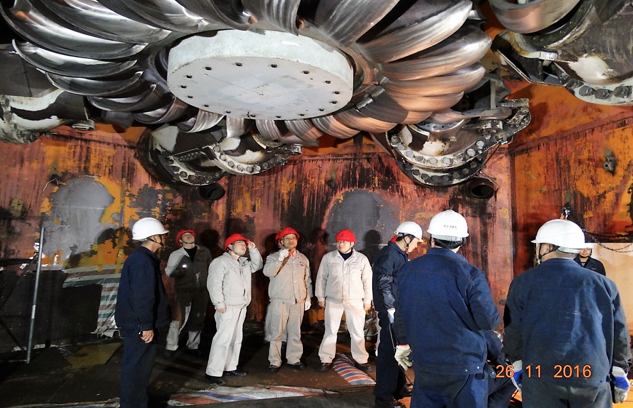 培训学习结束后,唐剑虹带领现场各部门负责人,深入流域梯级水电站生产现场开展了安全生产大检查。检查组一行首先来到金窝水电站2号机组大修现场,重点检查了设备检修安全措施落实、易燃易爆物品存放、环境保护、用电安全等情况, 随后检查了大发水电站1号机组检修、电缆桥架整治和球阀防腐工程施工安全措施落实情况。
