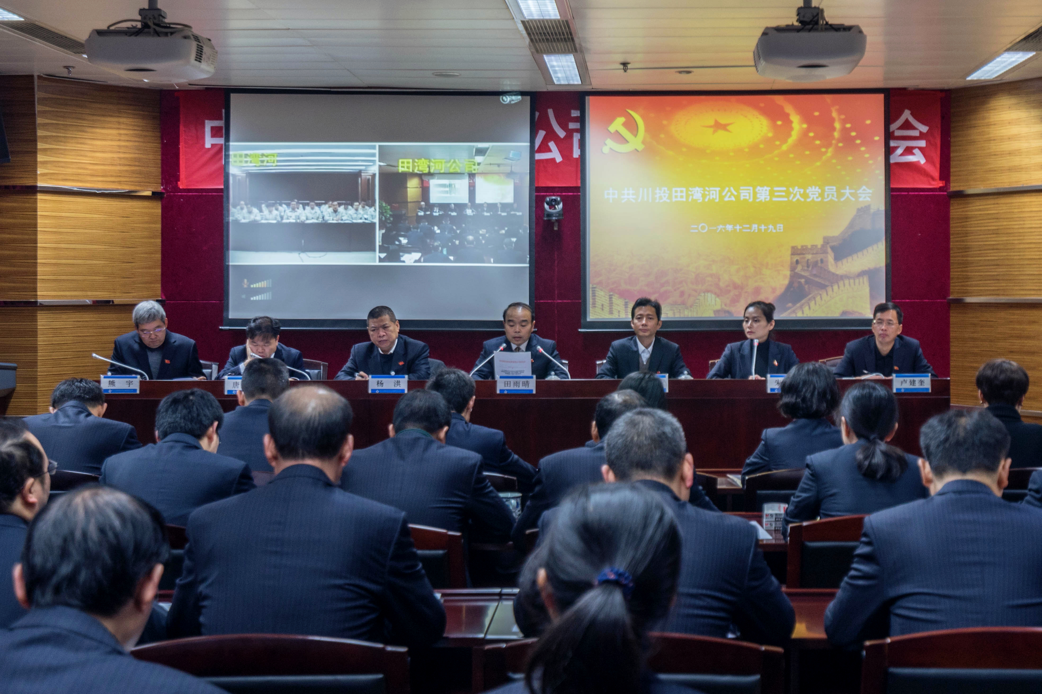 2016年12月19日,中共四川川投田湾河开发有限责任公司第三次党员大会胜利召开,本次大会以视频方式在成都远控1801会议室和电站现场208会议室同时进行。川投集团党委委员、纪委书记田雨晴,川投能源党委副书记、副董事长、总经理杨洪,集团党群工作部宋寻,上市公司党群工作部主任杨岚一行出席了会议。田湾河公司全体党员参加了会议,民主党派代表、非党员中层管理人员、入党积极分子和群众代表列席会议。