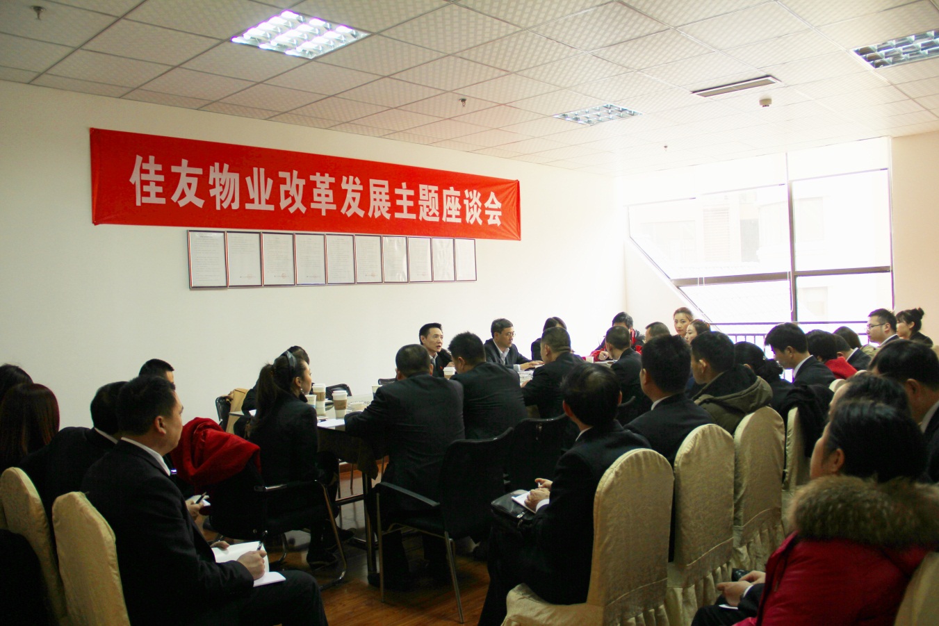 2017年3月3日下午,佳友物业改革发展主题座谈会在川网国际花园物业服务中心会议室召开。佳友物业董事长、总经理王宾,副总经理侯永胜,总会计师郭蓉出席了会议,公司本部全体员工,各物业服务中心负责人,各级员工代表60余人参加会议。