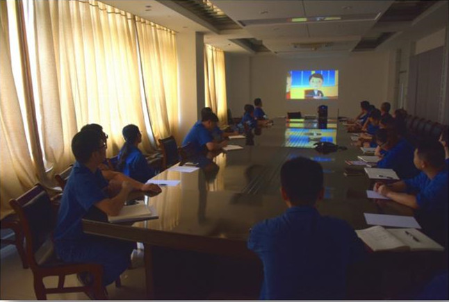 7月6日,川南发电公司党委在行政楼三楼举办党建知识培训,组织公司领导、支部书记、支委委员观看动漫片《入党》。