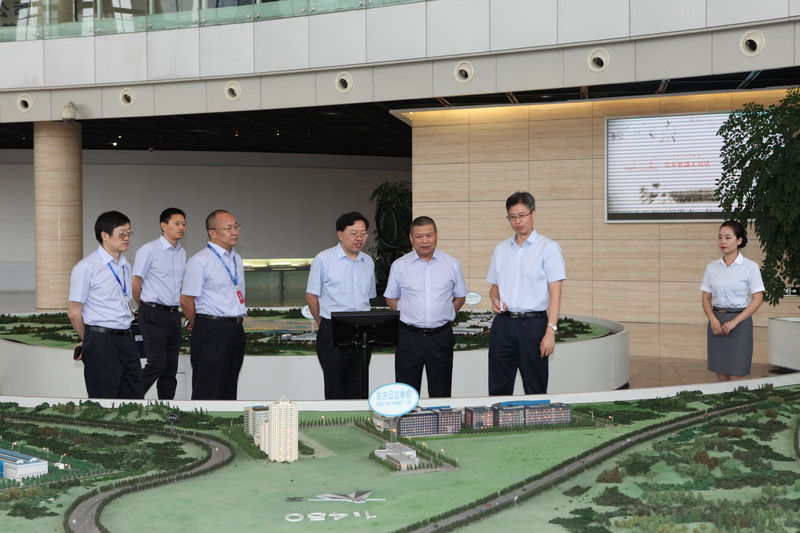 杨洪一行到达东方电气中央研究院后,首先参观了科技展示厅,王为民向杨洪一行逐一介绍了展厅内东方电气集团自成立以来的重大研发成果、核心技术、重要产品,以及为我国工业发展作出的巨大贡献和辉煌历史。