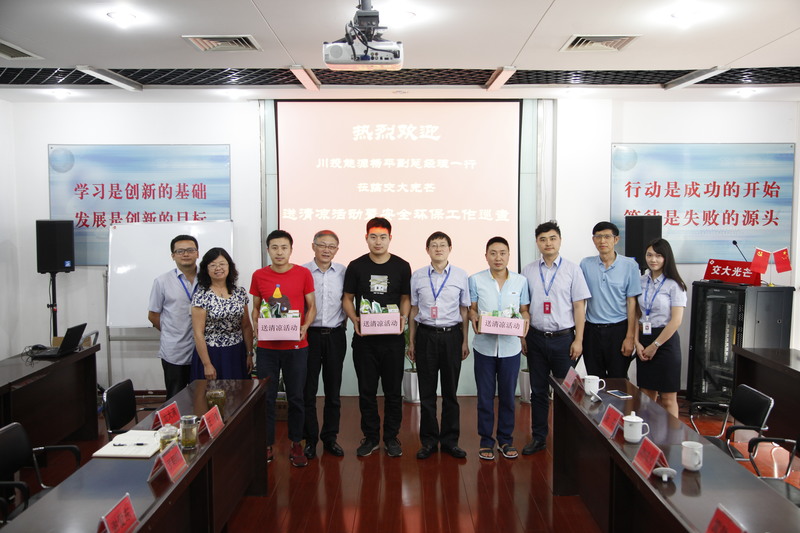 8月9日,川投能源副总经理杨平率安全环保监察部经理谢成光、行政部副主任朱伦伦、党群部副主任雷勋中一行五人赴交大光芒开展安全环保工作巡查暨夏季送清凉活动。交大光芒副总经理、工会主席王倩、副总经理、财务总监罗朝顺等陪同。