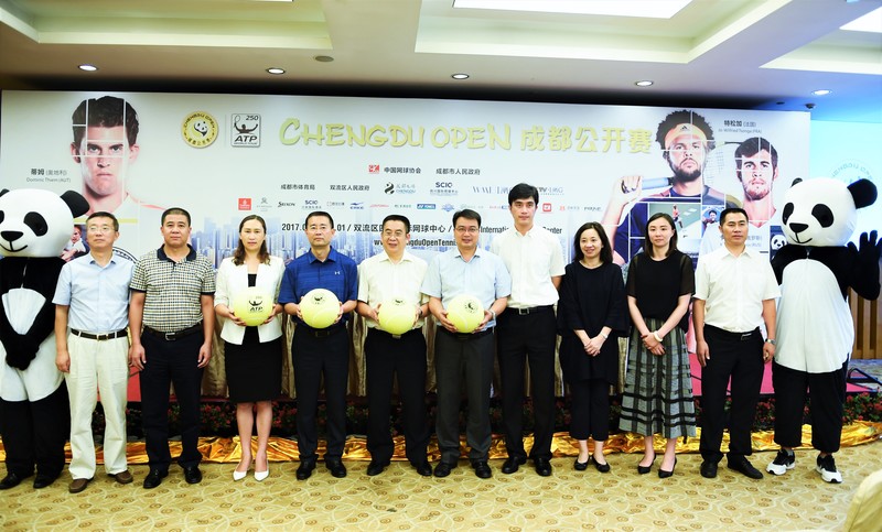 8月23日下午,2017ATP成都网球公开赛新闻发布会在川投国际酒店锦绣厅召开。成都市体育局副局长高伟,成都文化旅游发展集团有限责任公司党委副书记、董事、总经理高润强,双流区体育局局长谢艳,四川川投国际网球中心开发有限责任公司执行董事兼总经理王旭涛等出席发布会。
