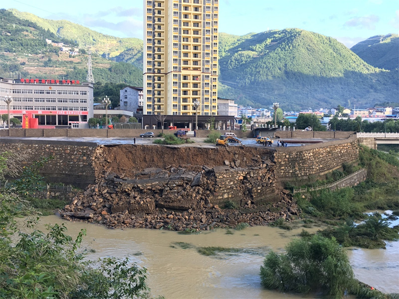入秋以后,万源市遭遇连续降雨,9月2日至5日,万源市境内经历强降雨过程,降雨有28个站点累计超过50毫米,降雨量最大为106毫米,横穿万源城区的后河河水暴涨,滚滚洪水击溃了部分河段的河堤。9月5日下午,川投水务万源公司在管网巡查中发现城区取水管道(鞠家坝大桥处)受河堤塌方影响,管道断裂,受损严重。两组取水管道均被塌方体拦腰截断,3000立方米土石方掩埋长度达80余米,河道水位随着雨水增加还在上升。