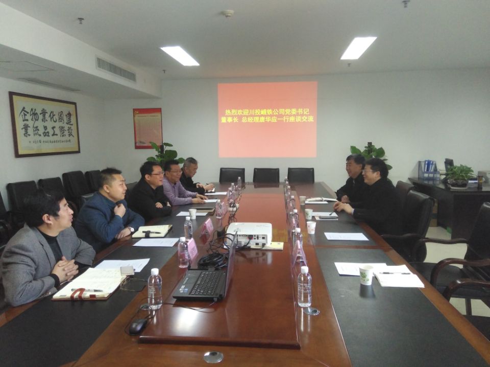 近期,川投峨铁公司党委书记、董事长、总经理唐华应率副总经理陈新龙和供销公司相关领导一行4人前往公司重要战略合作伙伴——陕西煤业化工物资集团有限公司,拜会该司相关领导。陕煤化物资集团公司执行董事、总经理郭旭东、副总经理孟永刚、总会计师梁林和市场部及重庆分公司负责人在会议室热情接待了唐华应一行。陕煤化物资公司总经理郭旭东对唐华应一行专程到访陕煤化表示热烈欢迎,双方在友好的氛围中围绕深化合作等事宜进行了座谈交流。