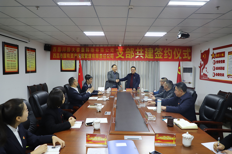 为深入学习贯彻党的十九大精神,汇集智慧力量,凝聚党建合力,助推川投西昌医院项目建设,打造新时代基层党支部,12月27日上午,在西昌市国资公司党员活动室,川投大健康公司与西昌市国资公司共同举办“支部结对共建”签约仪式,集团西昌项目筹备组副组长、大健康公司党支部书记鲁洪斌,西昌市国资公司董事长贾星,总经理李红丁,支部书记丁锐锋等出席签约仪式。