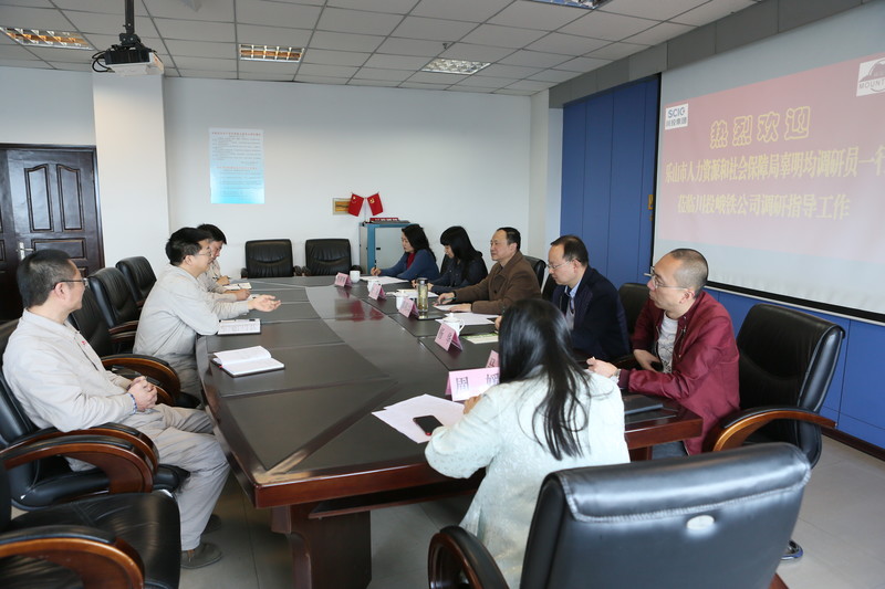 3月22日,乐山市人力资源和社会保障局辜明均调研员率乐山市行政审批科科长杨华、主任科员马松以及峨眉山市人力资源和社会保障局劳动仲裁院院长叶林等一行6人专程到川投峨铁公司开展调研。川投峨铁公司党委书记、总经理唐华应,党委副书记、纪委书记、工会主席余华伟以及公司人力资源处部门负责人在公司908会议室接待了辜明均一行。