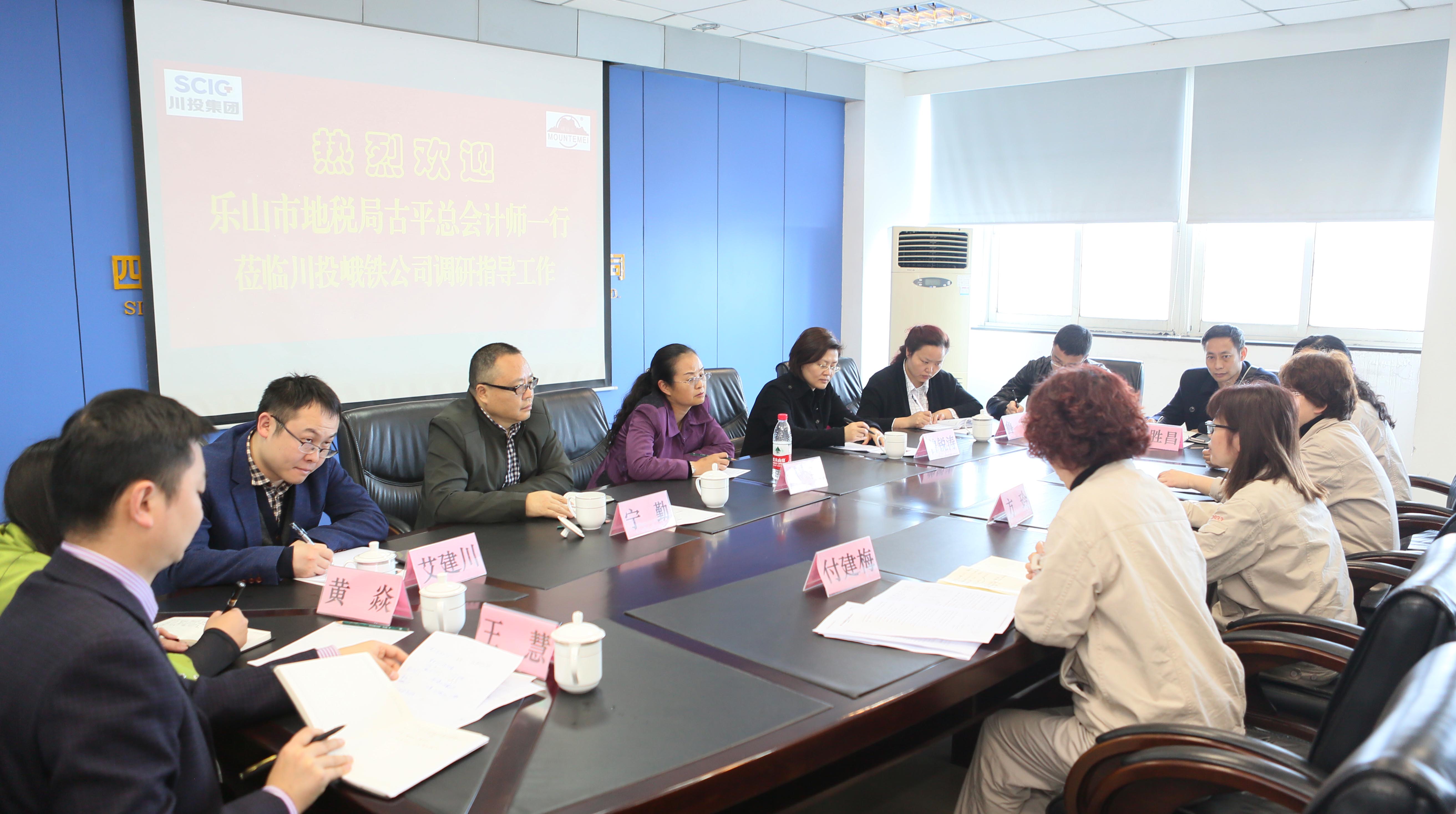 近日,乐山地税局总会计师古平率峨眉山市地税局局长宁勤、第九税务所所长王慧等一行9人莅临川投峨铁调研生产经营及纳税等情况。川投峨铁公司副总会计师方玲以及财务处和子公司财务相关人员参加了调研会。