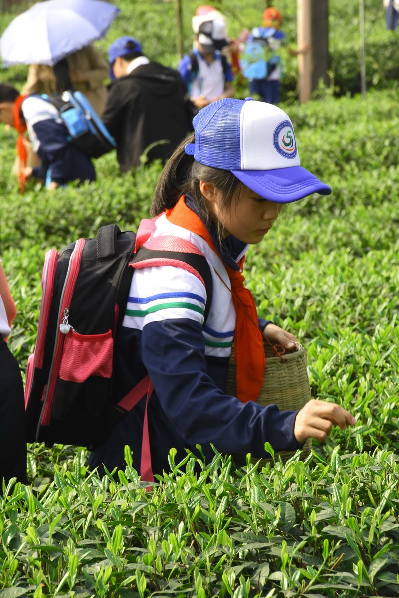 首先是学校老师和公司的茶艺师一起组织学生及家长到茶园体验采茶,过程中,茶艺师给学生现场讲解茶叶的品种,如何采茶,采什么样的标准等等。然后组织现场演示制茶,并就制茶的知识进行的讲解和教学,最后现场为学生及家长进行了茶艺表演,表演的同时进行了蒙顶山茶文化的讲解。