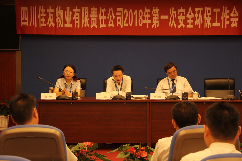 5月18日下午,佳友物业在川投大厦6楼会议室召开了2018年第一次安全环保工作会。公司安委会主任王宾,副主任侯永胜、郭蓉,安委会全体成员、公司本部全体管理人员、各项目负责安全环保工作人员及员工代表等参加了会议。会议由公司安委会副主任侯永胜主持。