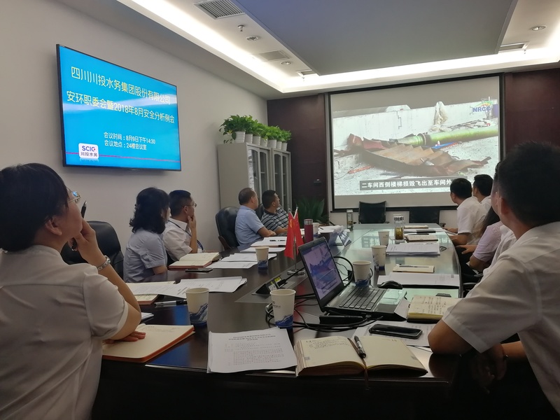 2018年8月9日,川投水务集团召开安环职委会暨8月份安全分析例会,会议由川投水务安环职委会主任邓锐主持,安环职委会及安环职委会办公室全体成员参加。