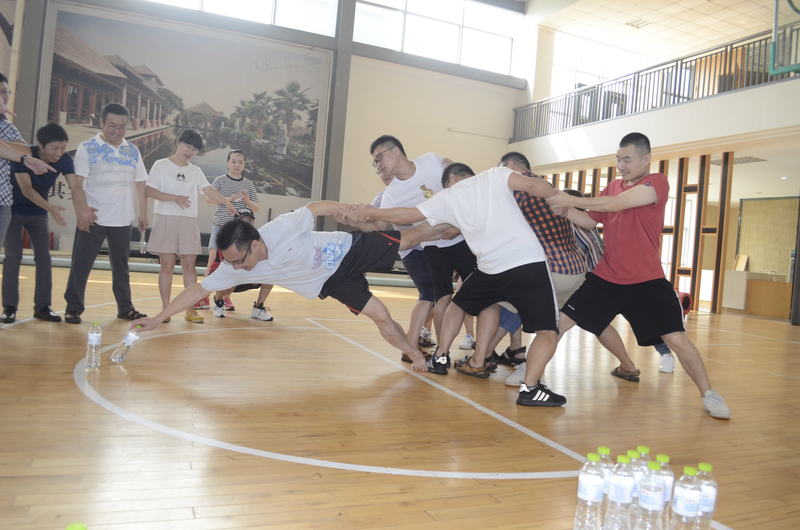 拓展活动将人员分成两队,活动主要以体现团队协作进行的,有“见虎蹲”、“一元五角组合”、“蒙眼过雷区”、“齐心取水”等, 活动中队员们积极策划、制订方案、分工协作、相互帮助、相互扶持,充分发挥团队优势,两队相互比拼,场面热烈有趣。