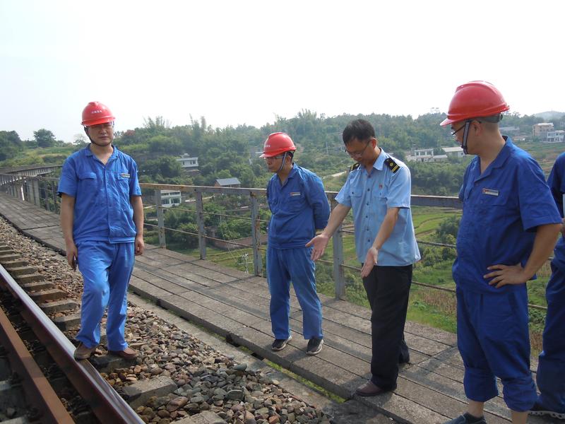 9月3日下午,川南发电党委副书记、总经理刘胜金带队,常务副总经理张洪、总经理助理兼生产技术部主任严天元、职能部门相关专责参加,对公司铁路专用线、半边山车站、方山车站相关设备设施进行了专项检查,内容包括铁路专用线安全状况、本年度铁路专用线整治项目实施情况等。刘总一行在川铁(泸州)公司工电段蒲段长和刘主任陪同下,现场查看了铁路沿线桥梁、隧道、站场、路基情况以及侧边坡和排水设施情况,检查了车站、铁路沿线安全设施、标志标识等。