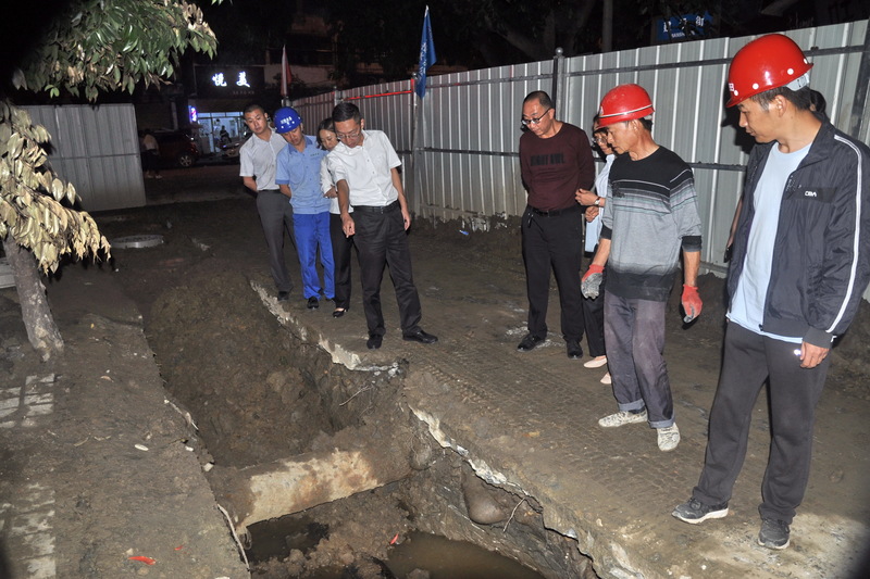 随后,邓总一行冒雨前往管网改扩建二期工程施工现场检查。在与监理人员交谈后,邓总指出:施工人员要严格落实各项安全措施,确保施工安全和人员安全;要文明施工,特别是要做好老百姓的宣传解释工作;要以高起点、高标准、高质量为要求,切实把二期工程做好、做扎实、做成亮点工程。