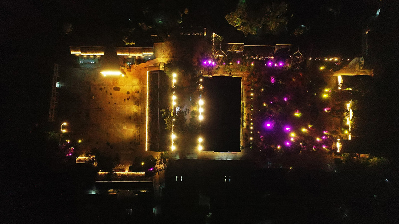 经过前期优质高效的方案设计与安装调试,第一期共计3000余套灯组各就各位。夜色渐浓,灯光亮起,毛泽东思想大舞台、东方红广场、快活林茶园……屋檐上、树枝上、石板路上……简约的光影体现着最质朴的年代感,投光的手法突显了建筑本身的特色,明暗的对比强调着小镇的真实质感,低调的灯光衬托了小镇的岁月静好。独具特色的景观打造配以日趋完善的商业配套,工矿年代小镇芭蕉沟给了游客们“留下来,住一夜”的最好的理由。