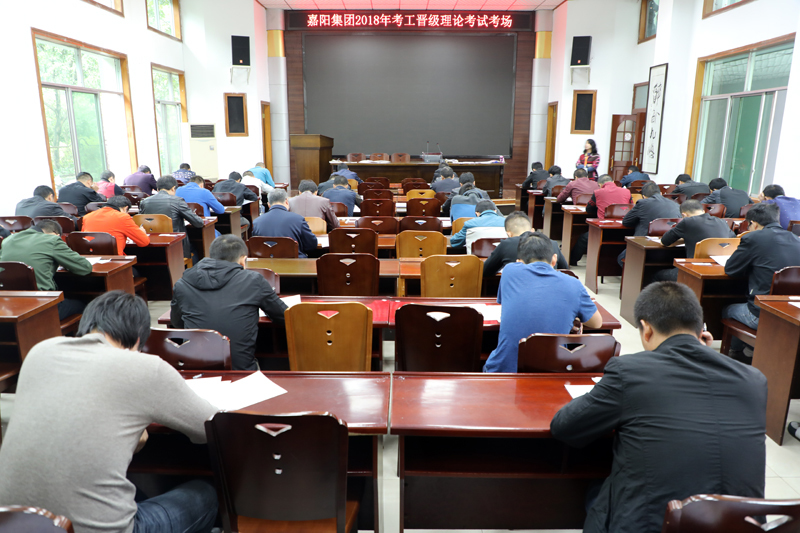 此次理论考试的考场有三个:嘉阳集团办公楼底楼、二楼会议室,职培校教室,考生们进考场先签到,对号入座后将准考证与身份证摆放在桌上。由成都工业学院提供两套试题,为保证考试的公开、公平、公正,现场由纪委工作人员抽取其中一套开封后进行考试。考试现场的监考老师和巡考人员由保卫部、纪委、人力资源和社会保障部、办公室人员、成都工业学院老师组成。成都工业学院老师宣布考场纪律之后考试正式开始,现场只听刷刷的写字声,考生们经过精心的准备,成竹在胸,下笔如有神。嘉阳集团领导对此次考试相当重视,作为此次考工晋级工作组的组长,总经理范勤英不定时对三个考场进行了巡视,了解考场、考生、考试情况。而考工晋级工作组副组长—副总经理王维洪则一直守在考场。理论考试成绩在考工晋级总成绩中占比30%,考生们必须全力以赴才能最终取得好成绩。考试结束后试卷密封交由成都工业学院老师进行批改,之后进行成绩公示。