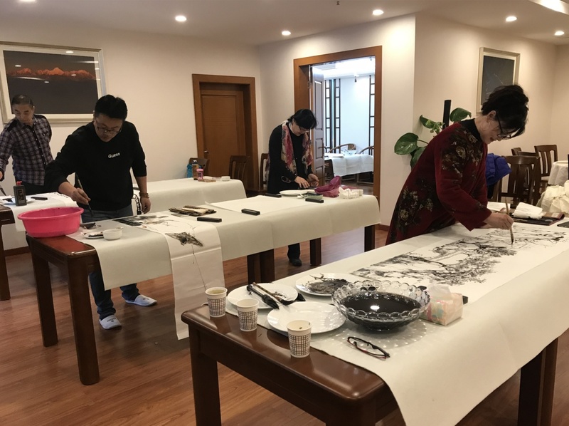11月10日晚,书画家们在田湾河公司电站营地举行了以田湾河为主题的书画笔会交流活动。书画家们挥毫泼墨,根据两天来在田湾河的所见、所想,按照自己的专业创作了相应的绘画作品,并与公司书画爱好进行了交流和专业指导。
