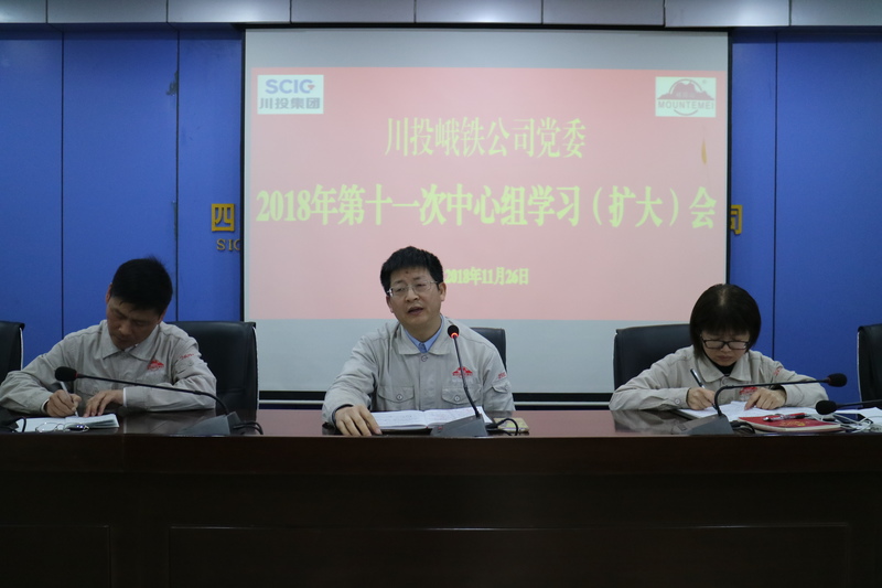 11月26日,川投峨铁公司党委在1011会议室召开2018年第十一次中心组学习扩大会,公司党委书记、总经理唐华应,党委副书记、纪委书记、工会主席余华伟、副总经理姜志川、总会计师方玲、总经理助理郑再春、后备及以上中层管理人员共65人参加。会议由余华伟主持。