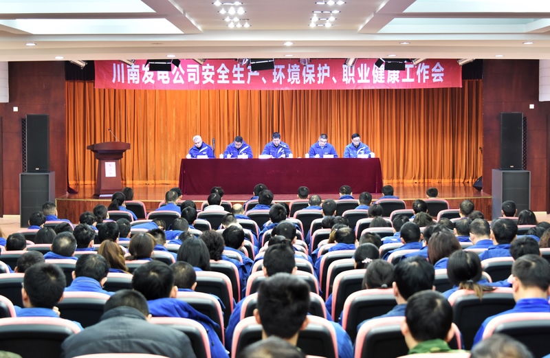 2019年1月9日上午,川南发电2019年安全生产、环境保护、职业健康工作会在综合楼五楼会议室召开。会议由川南发电副总经理陈嵩主持,公司在家领导、能离开工作岗位的员工及常驻外委单位负责人、代表及员工共168人参加会议。