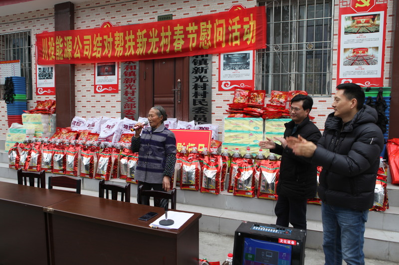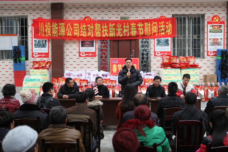 慰问现场,冉书记代表公司党委和全体员工,对新光村父老乡亲表示诚挚的新春祝福和问候。冉书记指出,党的十九大吹响了全面消灭贫困、实现小康号角,经过几年的努力,川投能源对口帮扶村面貌焕然一新,这得益于党和国家的好政策,得益于扶贫干部和当地村干部的共同努力,得益于广大乡亲父老的勤劳、智慧和汗水。接下来,川投能源将继续深入贯彻中央、省委及集团公司精准脱贫精神,创新扶贫工作思路,提高帮扶工作标准,立足实际,努力为帮扶村群众办更多的实事、好事,以优异的工作业绩喜迎新中国成立70周年。