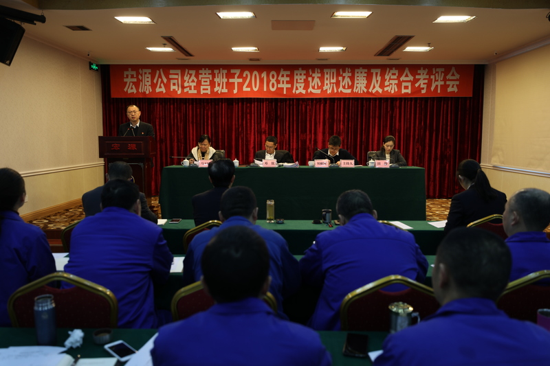 2019年2月1日上午8:30,在春节即将来临之际,川投水务集团党委副书记、总经理邓锐率综合部经理侯献国、安全环保部经理马玉斌、纪检监察部主任田静一行到宏源公司进行2018年度综合考评。宏源公司班子成员、中层管理人员、中心组学员70余人参加考评,23名青年员工列席会议。