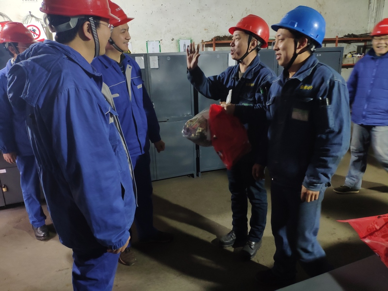 陈嵩在慰问时讲到,“今年春节,为了保障四川电网的安全运行和泸州市的可靠供电,公司机组必须保持连续运行,保电工作责任重大,为此公司部分员工舍小家、顾大家,放弃了与家人团聚的机会,坚守在工作岗位上,为公司机组发电生产保驾护航,大家辛苦了,感谢大家的辛勤付出!”他代表公司向大家拜年,并送上新年的祝福。每到一个值班点,陈嵩均详细询问了当前设备的运行情况及现场值班值守情况,并嘱咐值班人员要严守值班纪律,认真做好安全环保生产工作,春节期间更要注意加强设备巡视检查和维护消缺,保障机组正常发电生产,确保春节保电任务的顺利完成。