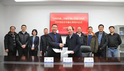 双方随后举行了“汾阳市汾河流域生态修复与保护工程PPP项目汾阳市市政基础设施建设工程PPP项目”合作备忘录的签约仪式。中船环境财务部长李运良、市场部副部长吴冠群、财务部主管吴雪峰、质量部主管李汉平,川投水务集团总会计师祝瑗、董事会秘书严斯亮、川投船重总经理马铭伟等参加了会谈。