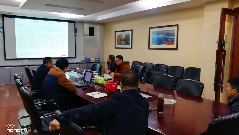 3月2日上午,在克州水电公司项目营地会议室进行了技术交流会,新疆克州水利发电有限公司电厂安生部、设备运维部的同仁对流域概述、项目规划,电站简介以及设备工况参数和运行至今喷针折向器出现的问题情况向我们进行了详细介绍。机组投运至今喷针出现过小波动随动故障,原因是传感器进水导致,通过更换传感器并加装密封材料进行处理;折向器并未发现弹簧断裂发卡等故障,因此目前还未分解过;另外转轮仅尖角缺口处背面有轻微空蚀现象,其余位置均未发现空蚀情况。伍超同志对公格尔电站喷针切换运行方式以及喷针分解、折向器检修及故障情况等问题进行了详细的咨询了解,双方技术人员还就冲击式水轮机转轮的更换、喷嘴检修等共同关注的问题进行了充分的交流。