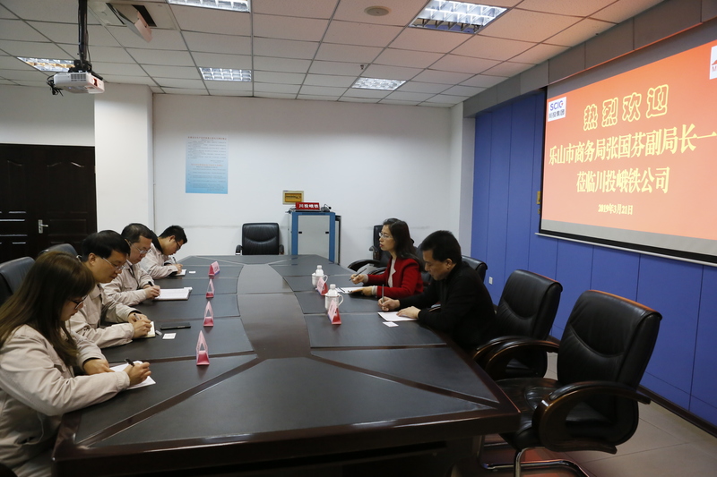 近期,乐山市商务局副局长张国芬及外贸科粟平一行到川投崥铁公司进行调研,川投峨铁公司常务副总经理李宏及进出口公司相关工作人员在公司908会议室接待来访客人一行。