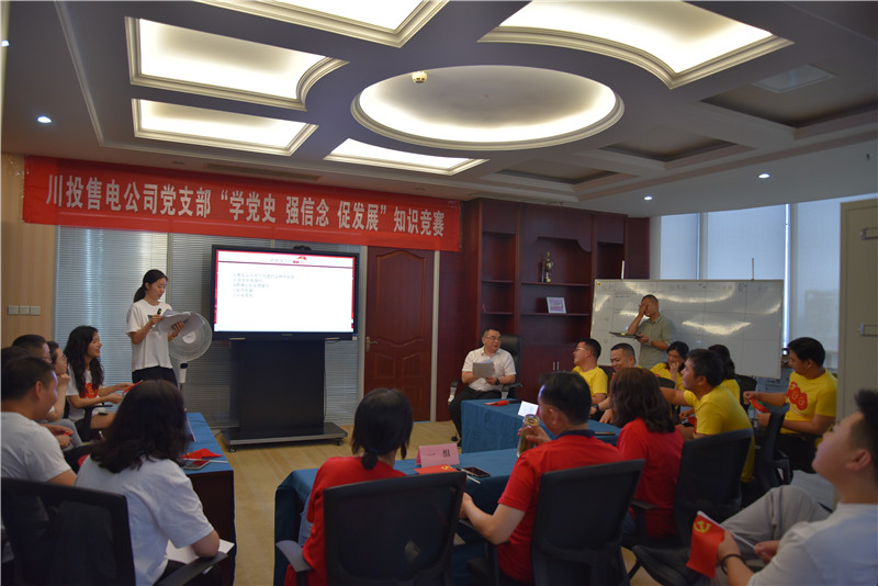 为深化党史学习教育,打牢开好专题组织生活会的思想基础,8月17日,川投售电公司党支部组织开展“学党史 强信念 促发展”党史知识竞赛,公司市场营销部等四个部门的人员交叉组合成三支队伍参加比赛。公司支部书记、董事长、总经理谢伟平参加活动并担纲裁判。