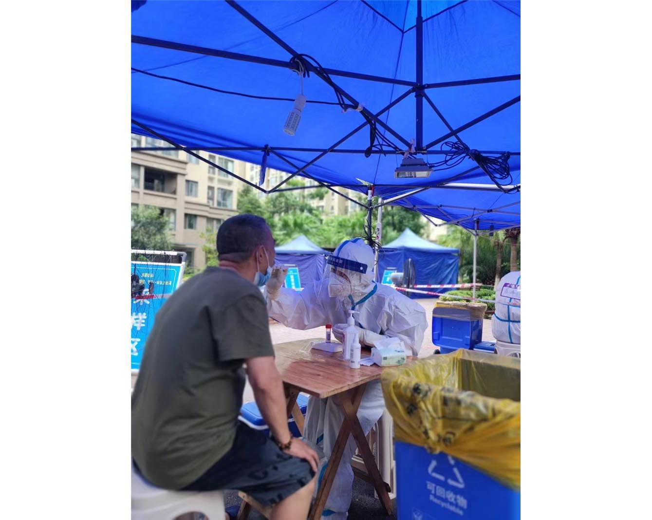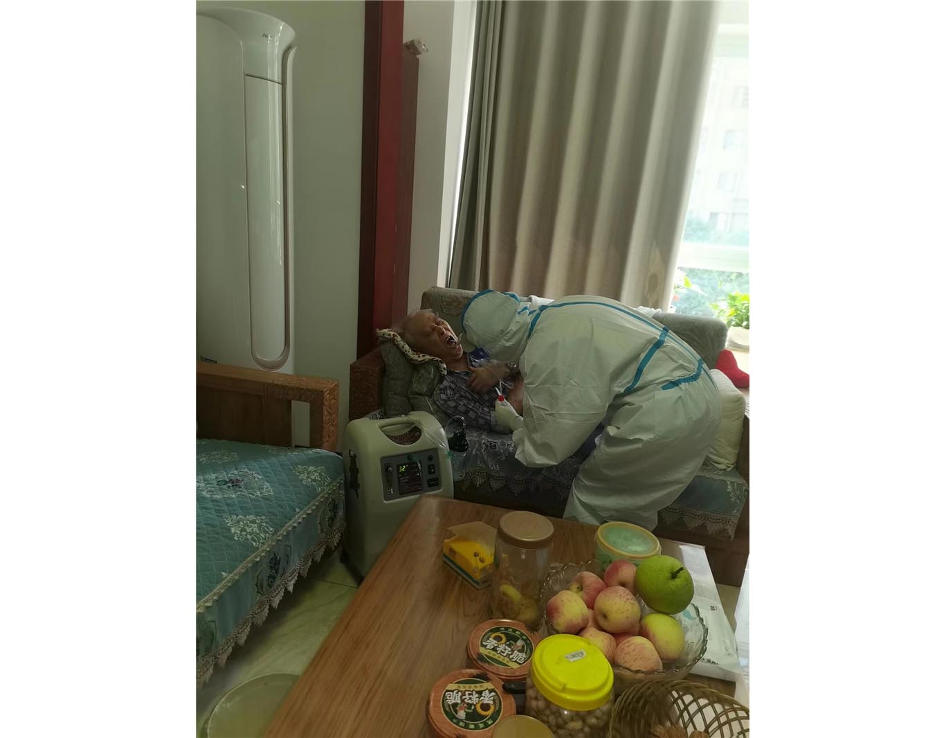 9月6日下午,迎来了一个特殊的“家庭医生”,四川口腔医院护士袁成程。王爷爷因年龄较大且患有心脏疾病,行动不便未能到社区规定的核酸采样点采集核酸。了解具体情况后,正在该社区执行采样任务的袁成程利用空余时间,在社区志愿者的引导下,身穿防护服,为王爷爷提供了上门采集服务。得知王爷爷常年卧床,他便热情地充当起了“家庭医生”,对王爷爷日常饮食及口腔保健等给予了建议。
