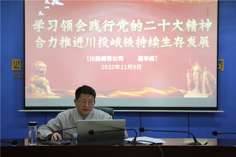 为深入学习宣传贯彻党的二十大精神,全面准确把握党的二十大核心要义、精神实质和深刻内涵,11月9日,川投峨铁公司党委书记、董事长唐华应以《学习领会践行党的二十大精神 合力推进川投峨铁持续生存发展》为题讲专题党课宣贯党的二十大精神。公司管理班子成员、中层助理及以上管理人员、生产综合党支部党员50人参加。