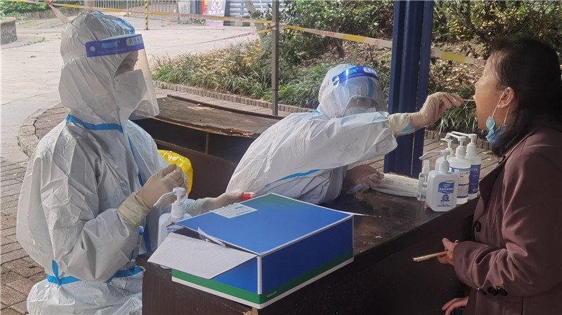 11月以来,重庆疫情形势愈发严峻,多个街道、社区、小区纳入临时封控,重庆市陆续开展多轮全员核酸。疫情当前,许多医护人员被纳入隔离管理,便民核酸检测点面临无法正常启用的难题。11月6日,重庆华西牙科医院接到重庆市卫生主管部门关于支援疫情防控工作的通知,立即安排全院护士轮番上阵,参与到渝北区渝鲁核酸检测点的采样工作。护士们每天早上6:50就到达核酸检测点,连续7个小时一直穿着厚重闷热的防护服,为附近居民提供核酸采样服务。目前,重庆华西牙科累计派出21人次,完成15000余人次的核酸检测。