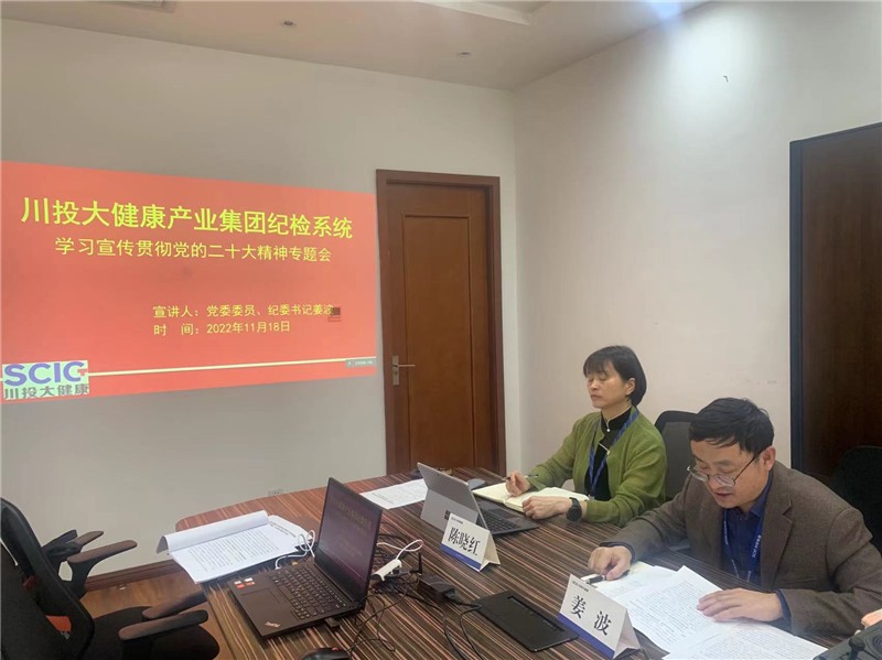 11月18日下午,川投大健康产业集团纪委组织召开纪检系统学习宣传贯彻党的二十大精神专题会,公司党委委员、纪委书记姜波对川投大健康产业集团纪检系统认真学习宣传贯彻党的二十大精神作宣讲。会上,川投大健康产业集团纪委委员、党委组织部副部长陈晓红领学了转载自中央纪委国家监委网站的文章《深入学习宣传贯彻党的二十大精神 推动纪检监察工作迈上新台阶》。川投大健康产业集团本部和所属子公司西昌大健康、川投盛榉等专兼职纪检干部交流了各自的学习心得。