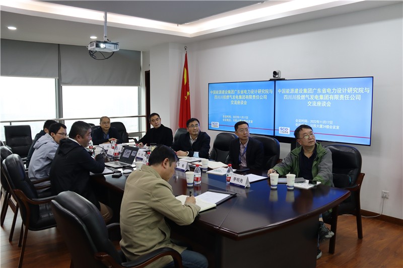 中国能源建设集团广东省电力设计研究院有限公司发电工程公司经营计划部项目开发经理冯凌云、经营计划部商务经理张小龙;川投燃电副总经理饶明、泸州气电董事李明尧、达州气电副总经理管立、川投燃电经营管理部副部长王镇参加交流。