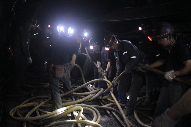 回撤遇阻,现场每个人的心都七上八下的,怎么办?“割煤机本体长6米,重达15吨,是超长、超重件,如果三个部分拆不了,整体运输难度和风险都很大”“拆开是迫在眉睫”“时间不能拖了”大家你一言我一语碰撞思维,“有代换螺母,可破坏性拆”优秀工匠杨卫星急中生智,他提出用井下风钻打眼的办法在液压螺母上打眼先破坏性拆开,大修后再用新配件组装。“赞成!”队长王均立马拍板!