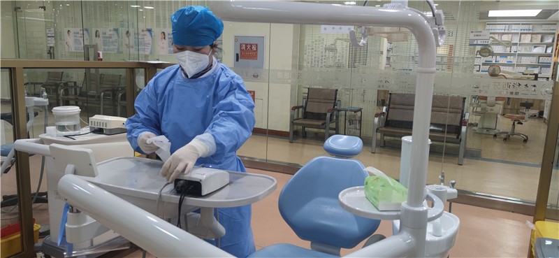12月4日,医院各部门员工分批次返岗,进行复诊前的准备工作。全体员工在返岗前进行核酸检测,保证在岗期间持有72小时核酸阴性报告。各临床科室严格进行诊疗环境管理,高标准执行《口腔诊疗器械消毒灭菌技术操作规范》,加强诊疗环境(牙椅、台面、地面等)的通风和清洁消毒。