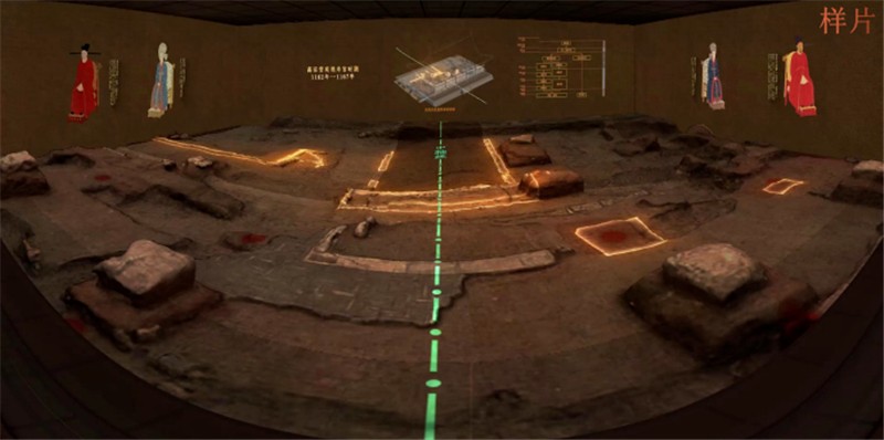 同时,技术团队遵循“与遗址展示不争、不抢”的原则,在遗址表面不装载设备的情况下,通过3D互动装置、动态长卷、数字投影、交互AR增强现实和虚拟现实等多种方式,创意再现不同时期的德寿宫遗迹和皇家宫殿建筑园林风貌。和其它博物馆的数字化展示相比,德寿宫数字化复原展示是直接在遗址空间中进行的,观众能够更切身地体验时间和空间上的“穿越”。