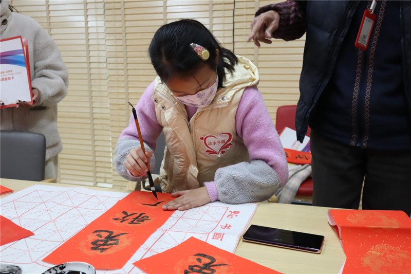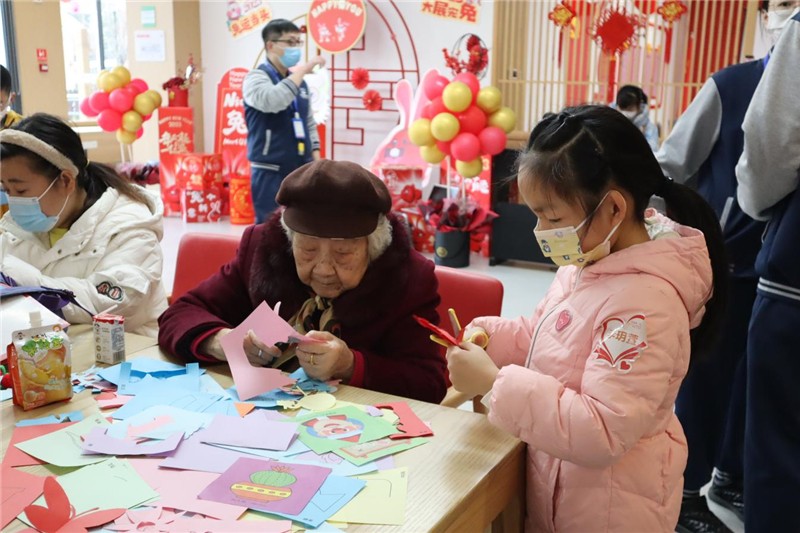 上午九时,“小小志愿者”们陆续来到活动现场,中心长者看见孩子们一张张活泼可爱的笑脸也不禁露出了慈爱的微笑。“新春游园会”“萌兔贺岁甜蜜蜜”“迎春送福年味浓”,一场场各具特色的小活动,拉进了志愿者们和入住长者的距离。携手包饺子、写春联,让新春的暖意照进每位长者心中。